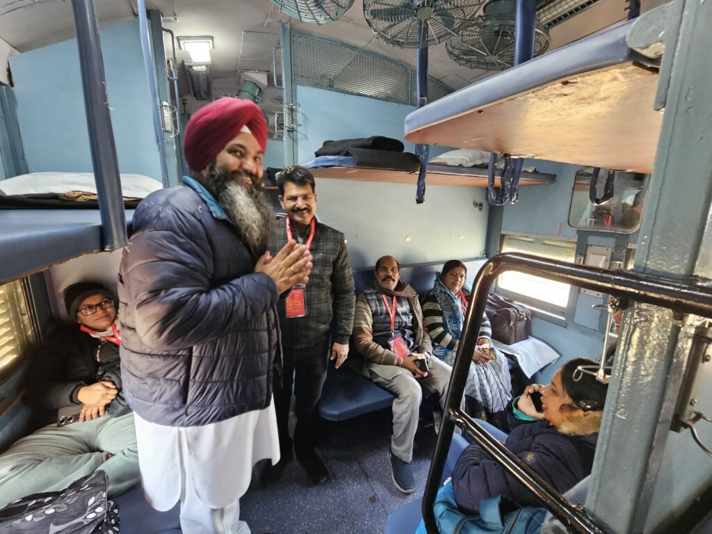 ਕਪੂਰਥਲਾ(ਗੌਰਵ ਮੜੀਆ ) 22 ਜਨਵਰੀ ਨੂੰ ਅਯੁੱਧਿਆ ਚ ਰਾਮ ਮੰਦਰ ਦੇ ਉਦਘਾਟਨ ਅਤੇ ਰਾਮਲਲਾ ਦੇ ਪ੍ਰਾਣ ਪ੍ਰਤਿਸ਼ਠਾ ਹੋਣ ਤੋਂ ਬਾਅਦ ਭਾਰਤੀ ਜਨਤਾ ਪਾਰਟੀ ਆਪਣੀ ਦੇਖ-ਰੇਖ ਚ ਦੇਸ਼ ਭਰ ਦੇ ਰਾਮ ਭਗਤਾਂ ਨੂੰ ਅਯੁੱਧਿਆ ਦੀ ਯਾਤਰਾ ਕਰਵਾ ਰਹੀ ਹੈ।ਇਸ ਲੜੀ ਚ ਰਾਮ ਦੀ ਪਹਿਲੀ ਰੇਲਗੱਡੀ ਜਲੰਧਰ ਛਾਉਣੀ ਤੋਂ ਸ਼ੁੱਕਰਵਾਰ ਸਵੇਰੇ 8:45 ਵਜੇ ਰੇਲਵੇ ਸਟੇਸ਼ਨ ਤੋਂ ਅਯੁੱਧਿਆ ਲਈ ਰਵਾਨਾ ਹੋਈ।ਇਸ ਟਰੇਨ ਵਿੱਚ ਵਿਰਾਸਤੀ ਸ਼ਹਿਰ ਕਪੂਰਥਲਾ ਦੇ 188 ਰਾਮ ਭਗਤ ਰਾਮ ਲੱਲਾ ਦੇ ਦਰਸ਼ਨਾਂ ਲਈ ਭਾਜਪਾ ਸੋਸ਼ਲ ਮੀਡੀਆ ਸੈੱਲ ਦੇ ਸੂਬਾ ਕੋ ਕਨਵੀਨਰ ਵਿੱਕੀ ਗੁਜਰਾਲ ਦੀ ਅਗਵਾਈ ਹੇਠ ਰਵਾਨਾ ਹੋਏ।