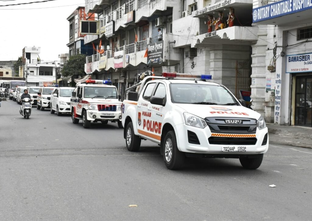 फ्लैग मार्च श्री गुरु रविदास चौक से शुरू होकर और शहर के विभिन्न इलाकों जैसे घाह मंडी, बस्ती गुजां, बस्ती दानिशमंदा, भार्गव कैंप अवतार नगर और नकोदर चौक से निकला।