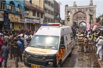 तेलंगाना में ऐतिहासिक चारमीनार के पास गुलजार हाउस की एक इमारत में…