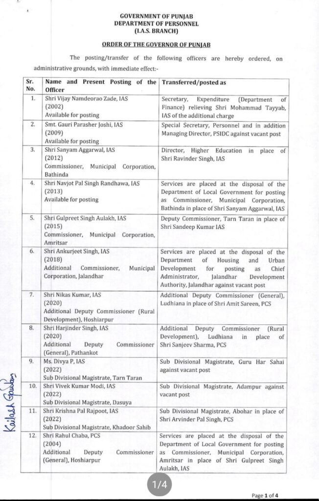 JalandharPunjab पंजाब में 49 IAS व PCS अधिकारियों का हुआ तबादला….देखें List Last updated: 2024/09/25 at 4:52 PM Talk Hindustan Share 0 Min Read SHARE देखें लिस्ट TAGGED: administration Share This Article Facebook Twitter Whatsapp Whatsapp Telegram Copy Link Share Previous Article ਪਿੰਡ ਮਹਿਰੋਵਾਲ ਤੋਂ ਬਿੰਜੋ ਤੱਕ 60 ਲੱਖ ਰੁਪਏ ਦੀ ਲਾਗਤ ਨਾਲ ਬਣਾਈ ਜਾਵੇਗੀ ਲਿੰਕ ਸੜਕ : ਸੰਸਦ ਮੈਂਬਰ ਡਾ: ਰਾਜ ਕੁਮਾਰ ਚੱਬੇਵਾਲ Next Article पंजाब में पंचायत चुनाव का एलान: 15 अक्टूबर को होंगे पंचायत चुनाव, 27 सितंबर से नामांकन Leave a comment Leave a comment Leave a Reply Cancel replyYour email address will not be published. Required fields are marked *Comment * Name * Email * Website Save my name, email, and website in this browser for the next time I comment.