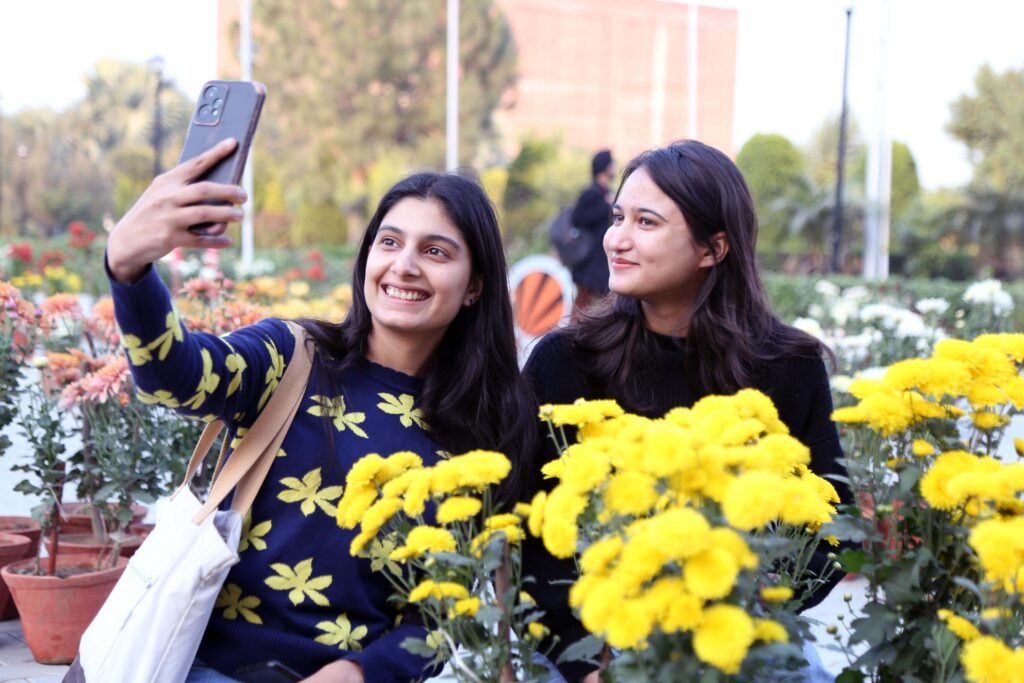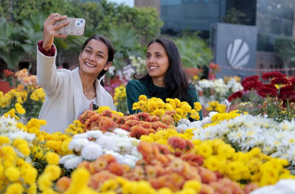 Jalandhar: Girls Chearful mood durind Annual Chrysanthemum Flower Exhibition 2024 organized at Lovely Professional University in jalandhar. Photo by Harinder Pal