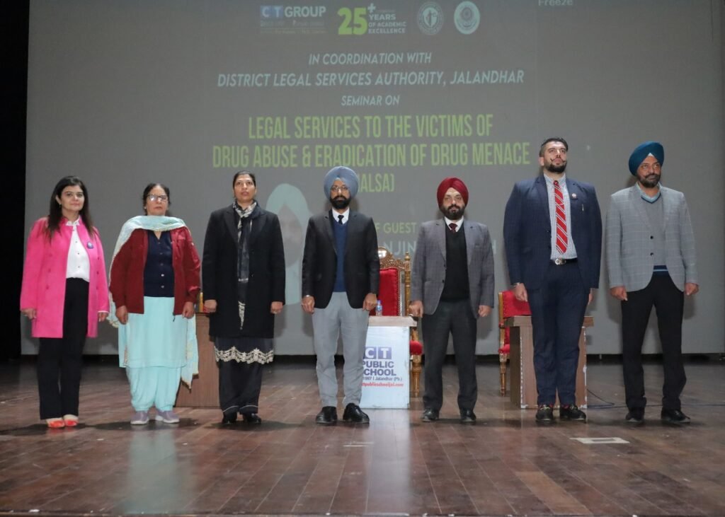 जालंधर : नशीली दवाओं  के दुरुपयोग के गंभीर मुद्दे के समाधान के लिए एक ठोस प्रयास में, सीटी ग्रुप ने जिला कानूनी सेवा अथॉरिटी (डी.एल.एस.ए) के सहयोग से एक राज्य स्तरीय जागरूकता सेमिनार का आयोजन किया।पंजाब और हरियाणा उच्च न्यायालय, चंडीगढ़ के कार्यवाहक मुख्य न्यायाधीश, माननीय न्यायाधीश गुरमीत सिंह संधावालिया के दिशानिर्देशों के तहत आयोजित इस सेमिनार में विभिन्न क्षेत्रीय विश्वविद्यालयों के 500 से अधिक छात्रों ने भाग लिया।