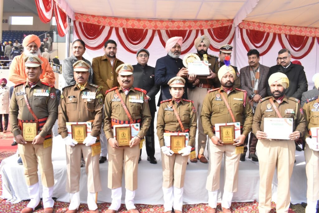 मुख्य अतिथि वित्त मंत्री पंजाब हरपाल सिंह चीमा ने पहले तीन स्थान प्राप्त करने वाली झांकियों के संबंधित विभागा प्रमुखों को सम्मानित किया।