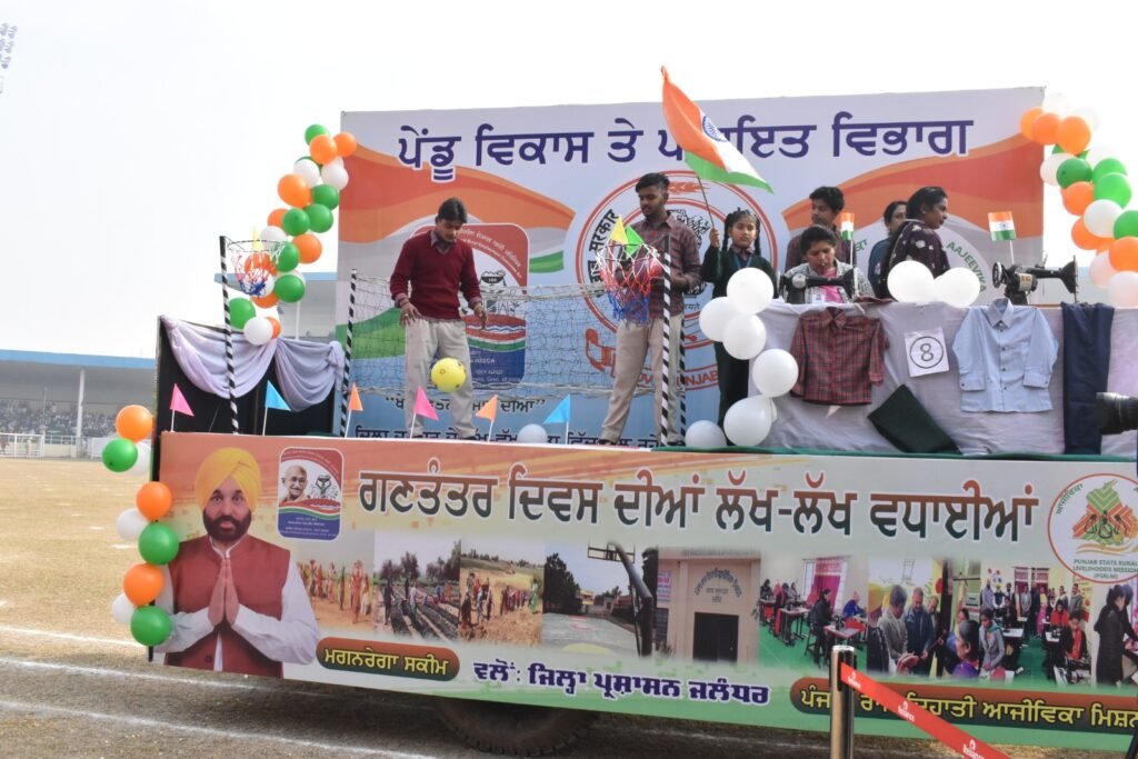 जालंधर, 26 जनवरी: गणतंत्र दिवस के अवसर पर स्थानीय गुरु गोबिंद सिंह स्टेडियम में आयोजित जिला स्तरीय समारोह दौरान विभिन्न विभागों की कुल 12 झांकियों ने पंजाब सरकार के विकास कार्यों और कल्याणकारी योजनाओं का प्रदर्शन किया।