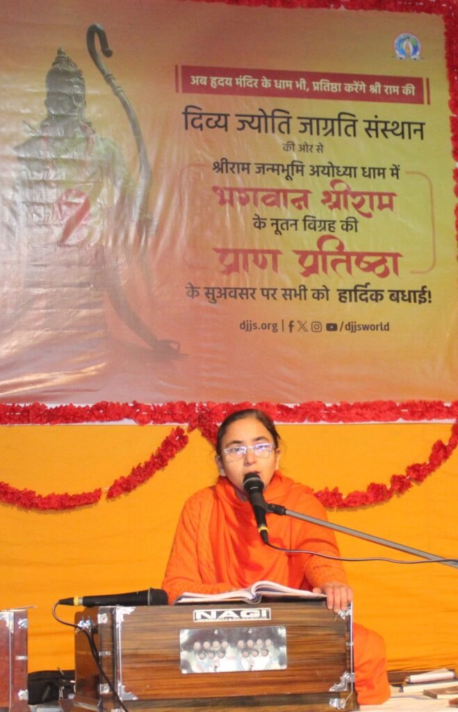 .ਸਾਡੀ ਅੰਦਰਲੀ ਅਯੁੱਧਿਆ ਦੇ ਅੰਦਰ ਭਗਵਾਨ ਸ਼੍ਰੀ ਰਾਮ ਦਾ ਦਰਸ਼ਨ ਇੱਕ ਪੂਰਨ ਸਦਗੁਰੂ ਦੁਆਰਾ ਹੀ ਕਰਨਾ ਚਾਹੀਦਾ ਹੈ।ਸਾਰੇ ਸੰਸਾਰ ਵਿੱਚ ਰਾਮ ਰਾਜ ਦੀ ਸਥਾਪਨਾ ਤਾਂ ਹੀ ਸੰਭਵ ਹੈ ਜਦੋਂ ਸਾਡੇ ਅੰਦਰ ਸ਼੍ਰੀ ਰਾਮ ਦਾ ਸੰਪੂਰਨ ਰਾਜ ਸਥਾਪਿਤ ਹੋਵੇ। ਭਗਵਾਨ ਸ੍ਰੀ ਰਾਮ ਦੇ ਆਦਰਸ਼ ਉਨਾਂ ਦੇ ਗੁਣ ਜਦੋਂ ਮਨਵੀ ਜੀਵਨ ਦੇ ਅੰਦਰ ਝਲਕਣੇ ਸ਼ੁਰੂ ਹੋ ਜਾਣਗੇ ਉਸ ਸਮੇਂ ਸੰਪੂਰਨ ਬਾਹਰੀ ਜਗ੍ਹਾ ਤੇ ਅੰਦਰੂਨੀ ਜਗ੍ਹਾ ਦੇ ਅੰਦਰ ਰਾਮਰਾਜ ਦੀ ਸਥਾਪਨਾ ਹੋ ਜਾਏਗੀ ਜਿਸ ਦਾ ਨੀਹ ਪੱਥਰ ਰੱਖਿਆ ਜਾ ਚੁੱਕਿਆ ਹੈ। ਪ੍ਰੋਗਰਾਮ ਦੌਰਾਨ ਸ਼੍ਰੀ ਰਾਮ ਦੀ ਉਸਤਤ ਵਿੱਚ ਗਾਏ ਗਏ ਸੁੰਦਰ ਭਜਨਾਂ ਨਾਲ ਸਰੋਤੇ ਮੰਤਰ ਮੁਗਧ ਹੋ ਹੋ ਗਏ। ਸਾਧਵੀ ਜੀ ਨੇ ਸਮੂਹ ਸੰਗਤਾਂ ਨੂੰ 22 ਜਨਵਰੀ ਨੂੰ ਆਪਣੇ ਘਰਾਂ ਵਿੱਚ ਦੀਵਾਲੀ ਮਨਾਉਣ ਦੀ ਅਪੀਲ ਕੀਤੀ।