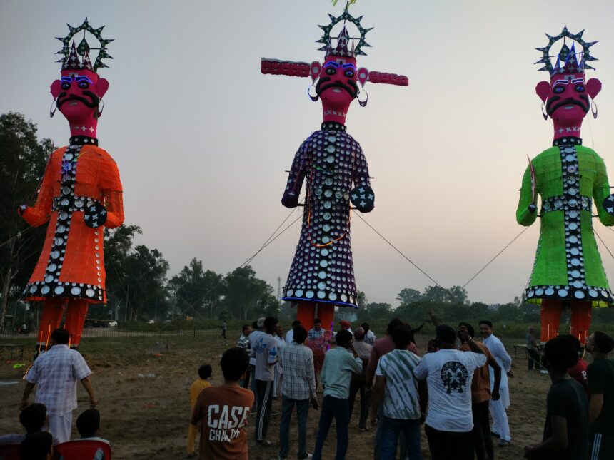 करतारपुर 1 अक्टूबर (जसवंत वर्मा ) नीलकंठ दशहरा कमेटी करतारपुर द्वारा हर वर्ष की तरह इस वर्ष भी दशहरा पर्व रेलवे रोड करतारपुर के खुले मैदान में बड़ी धूमधाम से मनाने जा रही है। इस बार कमेटी द्वारा रावण,कुंभकरण,मेघनाथ के पुतलो को शानदार लाइटों द्वारा सजाया गया है। जिसे देखने के लिए पूरा शहरआ रहा है।इस लाइटिंग का उद्घाटन प्रसिद्ध समाज सेवक मयंक गुप्ता ने रिबन काटकर किया।