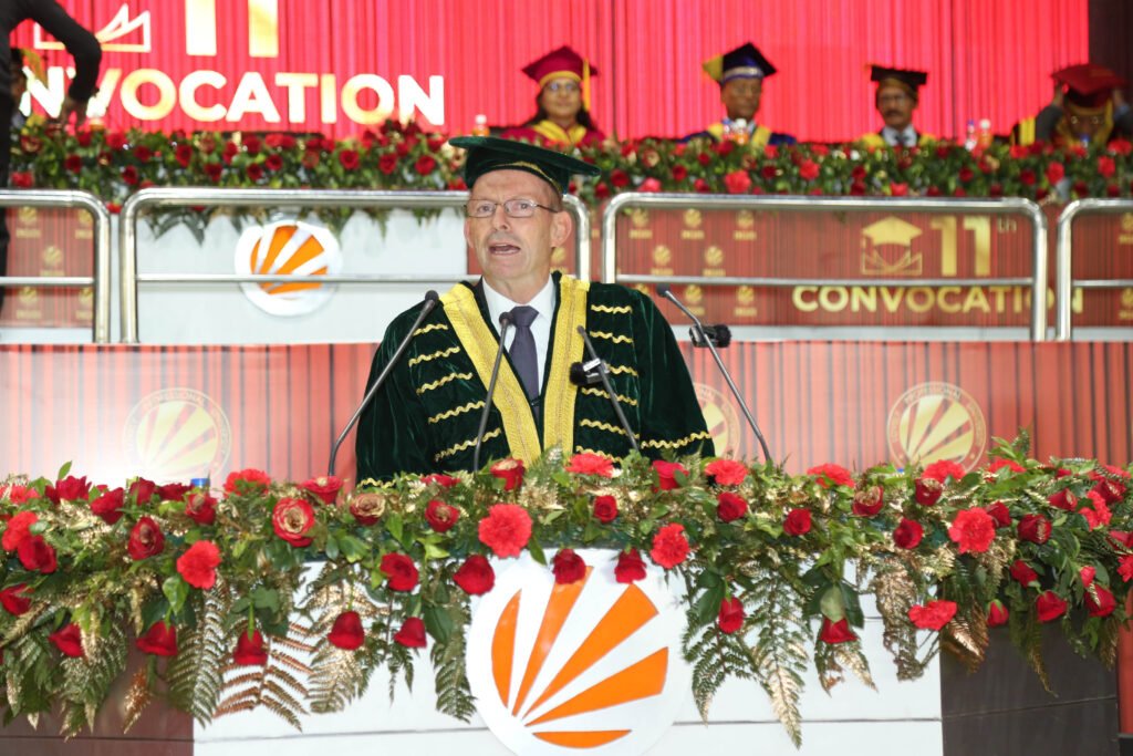 अपने संबोधन में, माननीय टोनी एबॉट ने एक उल्लेखनीय देश के रूप में भारत के लिए अपनी प्रशंसा व्यक्त की और स्नातक विद्यार्थियों से दुनिया में शांति, समृद्धि, स्वतंत्रता और विकास लाने के लिए अपने देश की क्षमता पर गर्व करने का आग्रह किया उन्होंने विद्यार्थियों को समाज पर सकारात्मक प्रभाव डालने के लिए अपनी डिग्रियों और पदकों के माध्यम से उनके भीतर पैदा हुए आत्मविश्वास और विश्वास का उपयोग करने के लिए भी प्रोत्साहित किया एक प्रतिष्ठित राजनेता, विद्वान और नेता के रूप में माननीय टोनी एबॉट ने वर्ष 2013 से 2015 तक ऑस्ट्रेलिया के 28वें प्रधान मंत्री के तौर पर कार्य किया,भारत की विशाल क्षमता को पहचानते हुए, उन्होंने भारत के उदार लोकतांत्रिक ढांचे की सराहना करते हुए इसके वैश्विक स्तर पर नेतृत्व को अति महत्व दिया