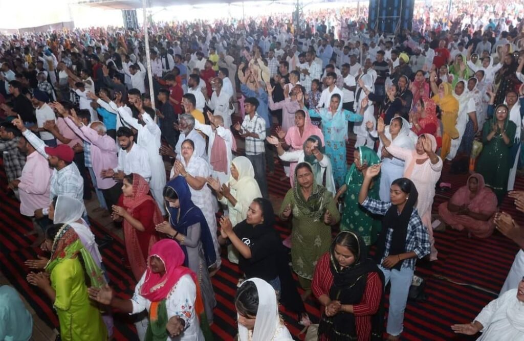 ਮੁੱਖ ਪਾਸਟਰ ਦਿਓਲ ਜੀ ਨੇ ਆਈਆਂ ਹੋਈਆਂ ਹਜ਼ਾਰਾਂ ਸੰਗਤਾਂ ਨੂੰ ਪ੍ਰਭੂ ਯਿਸ਼ੂ ਮਸੀਹ ਜੀ ਦੀ ਪਵਿੱਤਰ ਕੁਰਬਾਨੀ ਬਾਰੇ ਪਵਿੱਤਰ ਬਾਈਬਲ ਦੀਆ ਲਿਖਤਾਂ ਦੁਆਰਾ ਸੰਬੋਧਨ ਕੀਤਾ