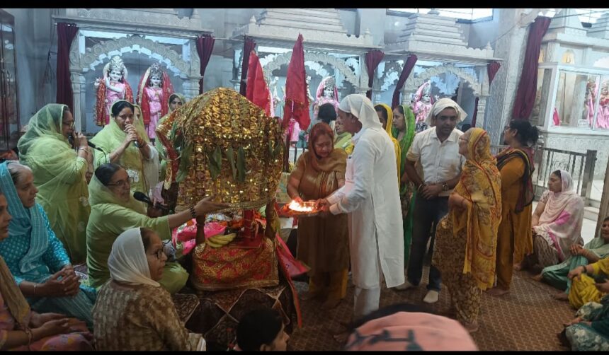 ਕਪੂਰਥਲਾ  (ਗੌਰਵ ਮੜੀਆ) ਸਾਉਣ ਮਹੀਨੇ ਦੀ ਸੰਗਰਾਂਦ ਅਤੇ ਗੁਰਪੁਰਨਿਮਾ ਦੇ ਸਬੰਧ ਵਿੱਚ ਮਾਤਾ ਭੱਦਰਕਾਲੀ ਮੰਦਿਰ ਸ਼ੇਖੂਪੁਰ (ਕਪੂਰਥਲਾ) ਵਿਖੇ ਮੰਦਿਰ ਕਮੇਟੀ ਦੇ ਪ੍ਰਧਾਨ ਪ੍ਰਸ਼ੋਤਮ ਪਾਸੀ ਅਤੇ ਚੇਅਰਮੈਨ ਰਾਧੇ ਸ਼ਾਮ ਸ਼ਰਮਾ ਦੀ ਅਗਵਾਈ ’ਚ ਧਾਰਮਿਕ ਸਮਾਗਮ ਦਾ ਆਯੋਜਨ ਕੀਤਾ ਗਿਆ। ਇਸ ਦੌਰਾਨ ਸਵੇਰੇ ਹਵਨ ਯੱਗ ਕਰਵਾਇਆ ਗਿਆ, ਜਿਸ ’ਚ ਪ੍ਰਧਾਨ ਪ੍ਰਸ਼ੋਤਮ ਪਾਸੀ, ਚੇਅਰਮੈਨ ਰਾਧੇ ਸ਼ਾਮ ਸ਼ਰਮਾ, ਮੀਡੀਆ ਇੰਚਾਰਜ ਸੋਨੂੰ ਪੰਡਿਤ ਸਮੇਤ ਹੋਰ ਕਮੇਟੀ ਮੈਂਬਰਾਂ ਨੇ ਪੂਰਨ ਆਹੂਤੀ ਪਾਈ। ਇਸ ਮੌਕੇ ਚੱਲ ਰਹੇ ਗੁਰਪੁਰਨਿਮਾ ਦੇ ਸਪਤਾਹਿਕ ਕਥਾ ਨੂੰ ਸੰਗਰਾਂਦ ਵਾਲੇ ਦਿਨ ਸ਼ਾਮ ਨੂੰ ਵਿਸ਼ਰਾਮ ਦਿੱਤਾ ਗਿਆ। ਇਸ ਮੌਕੇ ਸਵੇਰ ਤੋਂ ਹੀ ਵੱਡੀ ਗਿਣਤੀ ’ਚ ਸ਼ਰਧਾਲੂ ਮਾਤਾ ਜੀ ਦੇ ਦਰਬਾਰ ’ਤੇ ਨਤਮਸਤਕ ਹੁੰਦੇ ਹੋਏ ਮਾਤਾ ਜੀ ਦਾ ਆਸ਼ੀਰਵਾਦ ਪ੍ਰਾਪਤ ਕੀਤਾ। ਇਸ ਮੌਕੇ ਪ੍ਰਸ਼ੋਤਮ ਪਾਸੀ ਅਤੇ ਰਾਧੇ ਸ਼ਾਮ ਸ਼ਰਮਾ ਨੇ ਜਾਣਕਾਰੀ ਦਿੰਦਿਆ ਦਸਿਆ ਕਿ ਹਰ ਸੰਗਰਾਂਦ ’ਤੇ ਸਵੇਰੇ ਹਵਨ ਯੱਗ ਕਰਵਾਇਆ ਜਾਵੇਗਾ। ਇਸਦੇ ਨਾਲ ਹੀ ਉਨ੍ਹਾਂ ਨੇ ਸ਼ਰਧਾਲੂਆਂ ਨੂੰ ਸਾਉਣ ਮਹੀਨੇ ਦੀ ਵਧਾਈ ਦਿੱਤੀ।