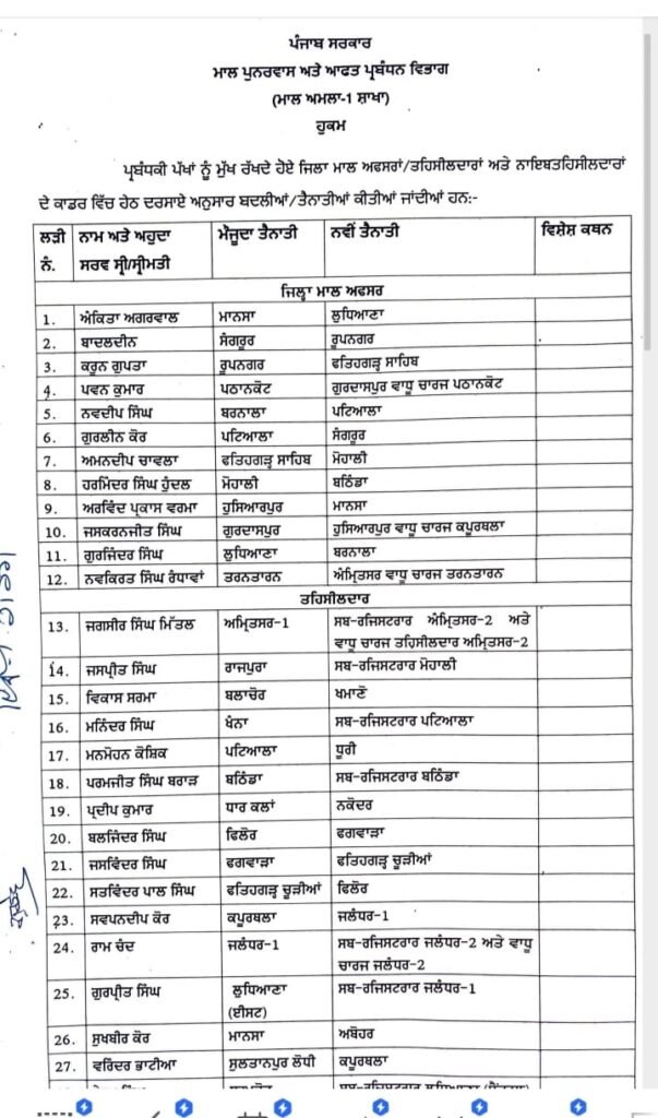 JalandharPunjab ਪੰਜਾਬ ਵਿੱਚ ਪੰਜਾਬ ਸਰਕਾਰ ਨੇ ਜਿਲਾ ਮਾਲ ਅਫਸਰ /ਤਹਿਸੀਲਦਾਰ ਅਤੇ ਨਾਇਬ ਤਹਿਸੀਲਾਂਦਾਰਾਂ ਦਾ ਕੀਤਾ ਤਬਾਦਲਾ…… ਦੇਖੋ ਲਿਸਟ Last updated: 2024/09/01 at 9:47 AM Talk Hindustan Share 0 Min Read SHARE Share This Article Facebook Twitter Whatsapp Whatsapp Telegram Copy Link Share Previous Article ਵਿਧਾਇਕ ਪਰਾਸ਼ਰ ਨੇ ਖਰਾਬ ਖੰਭਿਆਂ ਦੀ ਮੁਰੰਮਤ ਅਤੇ ਨਵੀਆਂ ਸਟਰੀਟ ਲਾਈਟਾਂ ਲਗਾਉਣ ਲਈ 76 ਲੱਖ ਰੁਪਏ ਦੇ ਪ੍ਰੋਜੈਕਟਾਂ ਦਾ ਕੀਤਾ ਉਦਘਾਟਨ Next Article ਜਲੰਧਰ ਪੁਲੀਸ ਕਮਿਸ਼ਨਰ ਨੇ ਪੁਲਿਸ-ਜਨਤਾ ਤਾਲਮੇਲ ਲਈ ਮਿਸ਼ਨ “ਸਹਿਯੋਗ” ਦੀ ਕੀਤੀ ਸ਼ੁਰੂਆਤ Leave a comment Leave a comment Leave a Reply Cancel replyYour email address will not be published. Required fields are marked *Comment * Name * Email * Website Save my name, email, and website in this browser for the next time I comment.