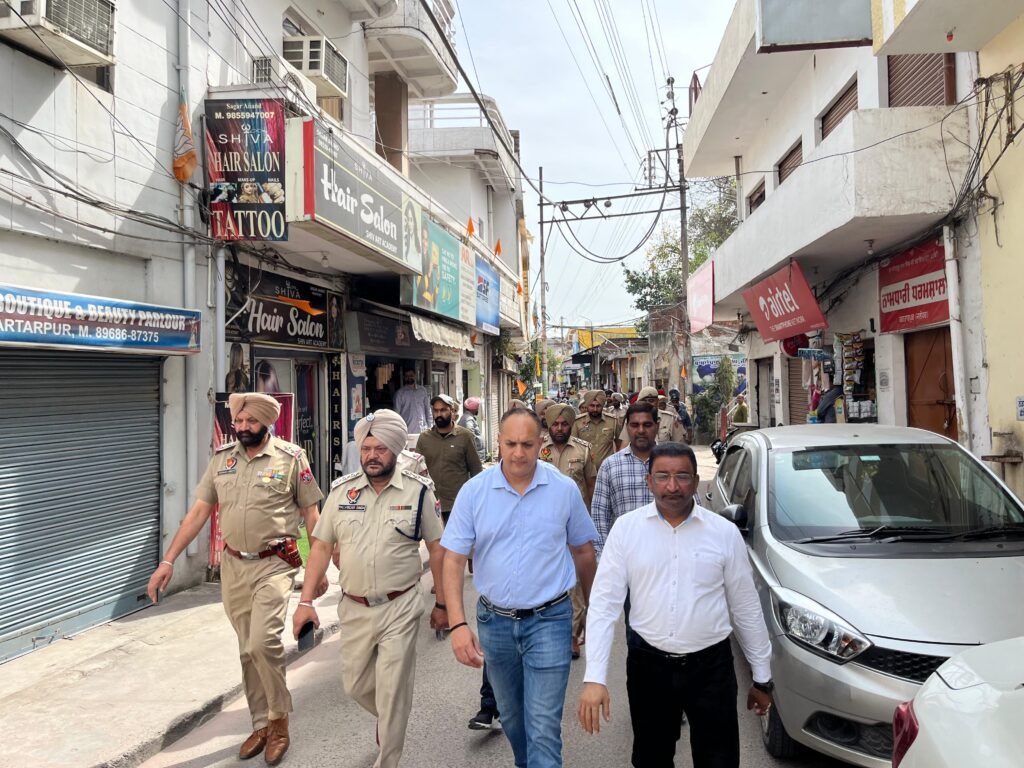 सहायक रिटर्निंग अधिकारी बलबीर राज और अमनप्रीत सिंह द्वारा सुरक्षा बलों के साथ करतारपुर और जालंधर शहर में फ्लैग मार्च