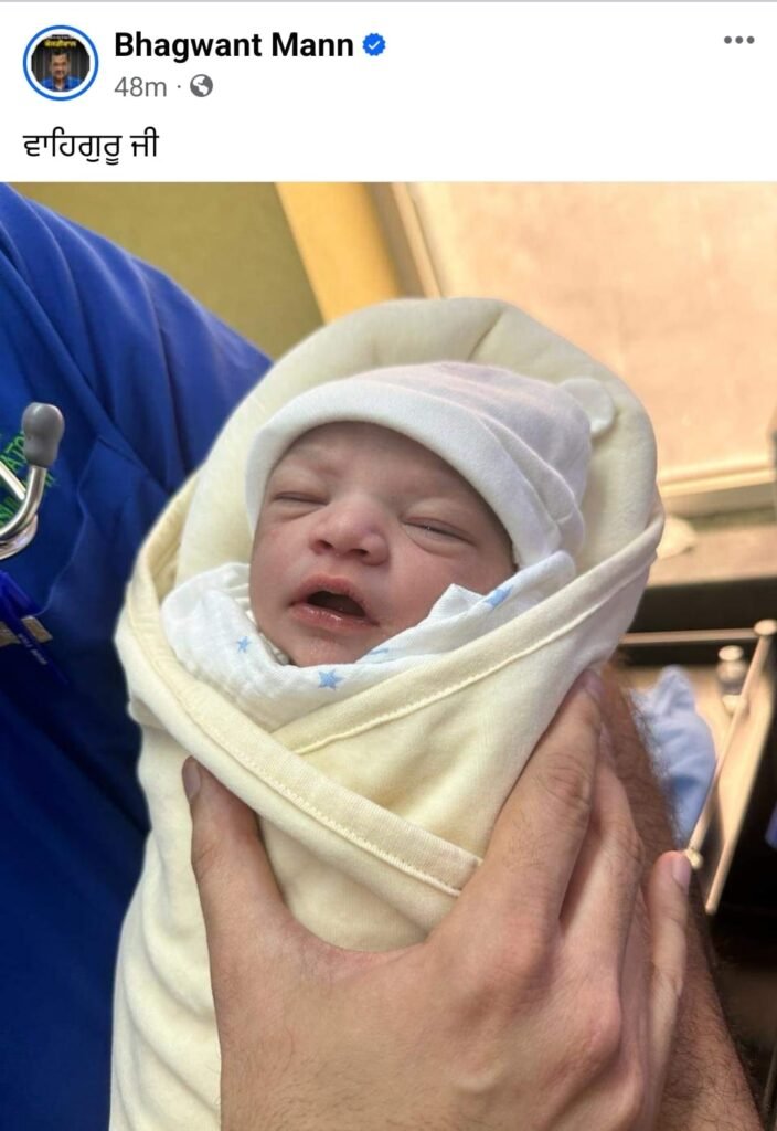 पंजाब के सीएम भगवंत मान फिर पिता बन गए हैं। पंजाब के मुख्यमंत्री भगवंत मान के घर किलकारियां गूंजी हैं। उनकी पत्नी डॉ. गुरप्रीत कौर ने गुरुवार को बेटी को जन्म दिया है। इसकी जानकारी खुद सीएम भगवंत मान ने सोशल मीडिया प्लेटफॉर्म एक्स के माध्यम से दी।