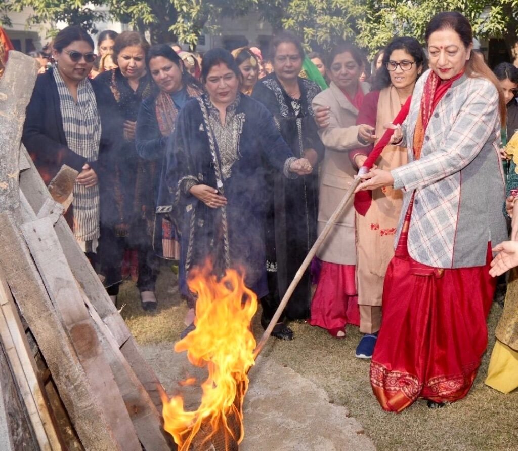 जालंधर : भारत की विरासत एवं ऑटोनॉमस संस्था, कन्या महाविद्यालय, जालंधर के द्वारा पूरे जोश एवं उत्साह के साथ लोहड़ी का त्यौहार मनाया गया. इस त्यौहार के दौरान विद्यालय की सेंट्रल ग्राउंड में समूह के.एम.वी. फैकल्टी द्वारा मिलकर लोहड़ी जलाकर सभ के भले की कामना की गई. इस अवसर पर संबोधित होते हुए विद्यालय प्रिंसिपल प्रो. अतिमा शर्मा दिवेदी ने सबको लोहड़ी के त्यौहार की