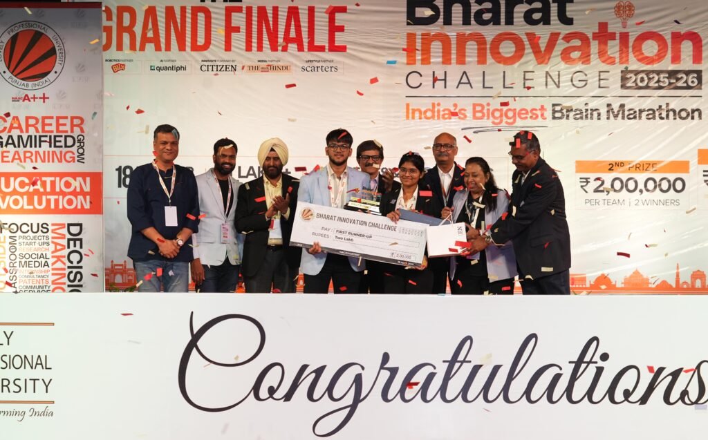 जालंधर; युवा इनोवेटर्स के लिए भारत की सबसे बड़ी ब्रेन मैराथन, भारत इनोवेशन चैलेंज 2025–26, लवली प्रोफेशनल यूनिवर्सिटी में आयोजित की गई। एलपीयू की इस राष्ट्रीय पहल को ज़बरदस्त रिस्पॉन्स मिला, जिसमें 28 राज्यों और 500 से ज़्यादा शहरों से 2,600 से ज़्यादा टीमों, 10,000 से ज़्यादा छात्रों और मेंटर्स ने हिस्सा लिया। दो-चरणों वाली इनोवेशन यात्रा के तौर पर डिज़ाइन किया गया यह चैलेंज, दस अलग-अलग विषयों पर ऑनलाइन सबमिशन के साथ शुरू हुआ, जिनमें स्मार्ट लिविंग, स्वास्थ्य और वेलनेस, साइबर सुरक्षा, जलवायु कार्रवाई, कृषि, मोबिलिटी, शिक्षा और समावेश शामिल थे। इस देशव्यापी समूह में से, शीर्ष 120 टीमें ग्रैंड फिनाले में पहुँचीं।