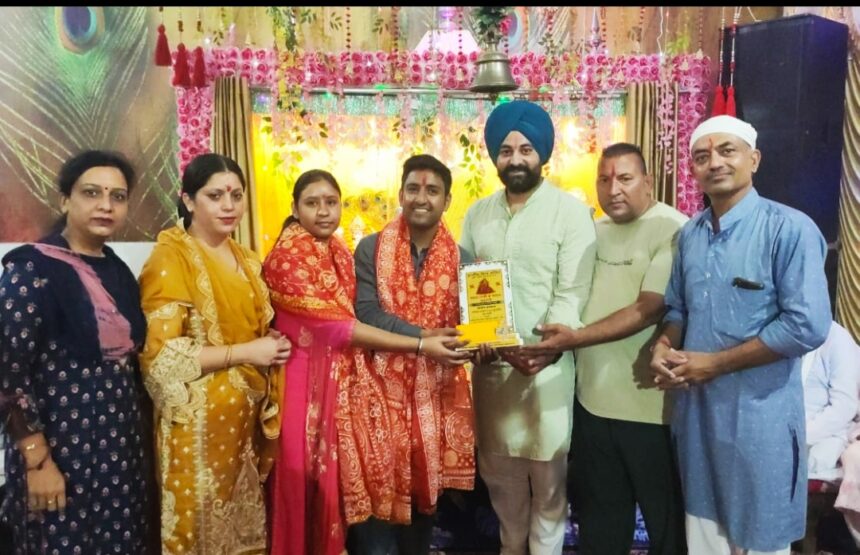 उसके उपरांत खुशप्रीत द्वारा माता रानी व राधा कृष्ण जी के भजन गाकर सभी को राधा कृष्ण जी के रंग में रंग दिया। अंत में आरती पूजन कर भोग लगाया तथा प्रसाद बांटा गया प्रधान दीपक कुमार ने पहुंचे सभी श्रद्धालुओं का धन्यवाद किया तथा श्री गणेश ड्रामाटिक क्लब के नए बने प्रधान अनिल शर्मा को स्मृति चिन्ह् देकर भी सम्मानित किया गया इस दौरान ठंडे मीठें दूध का भी लंगर लगाया गया।
