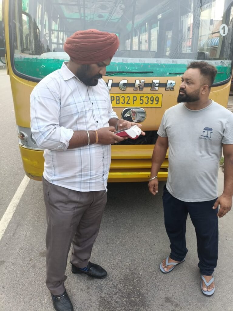 ड्राइविंग लाइसेंस के चालान किए गए। इसके साथ ही सुरक्षित स्कूल वाहन नीति तहत स्कूल बसों की भी जांच की गई जिनके दस्तावेज/यूनिफार्म पूरे नहीं उनके चालान किए गए इसके साथ ही चेकिंग के दौरान एक ओवरलोड वाहन भी मिला
