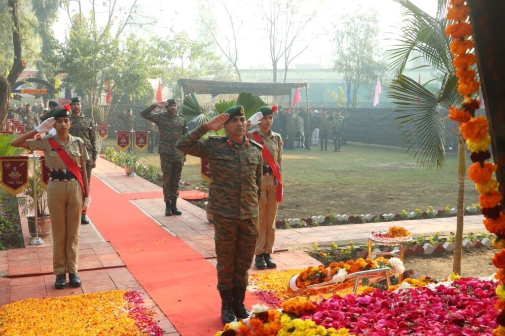 समारोह की शुरुआत एक गरिमामय पुष्पांजलि अर्पण समारोह से हुई, जिसमें वरिष्ठ सैन्य अधिकारी, वीर सैनिकों के परिजन, दिग्गज (वेटरन्स) एवं नागरिक प्रशासन के प्रतिनिधियों ने भाग लिया। इस अवसर पर उन वीर सैनिकों की वीरता, व्यावसायिक दक्षता एवं सर्वोच्च बलिदान को श्रद्धांजलि अर्पित की गई, जिन्होंने राष्ट्र की सुरक्षा सुनिश्चित करते हुए भारतीय सेना की उच्चतम परंपराओं का निर्वहन किया।