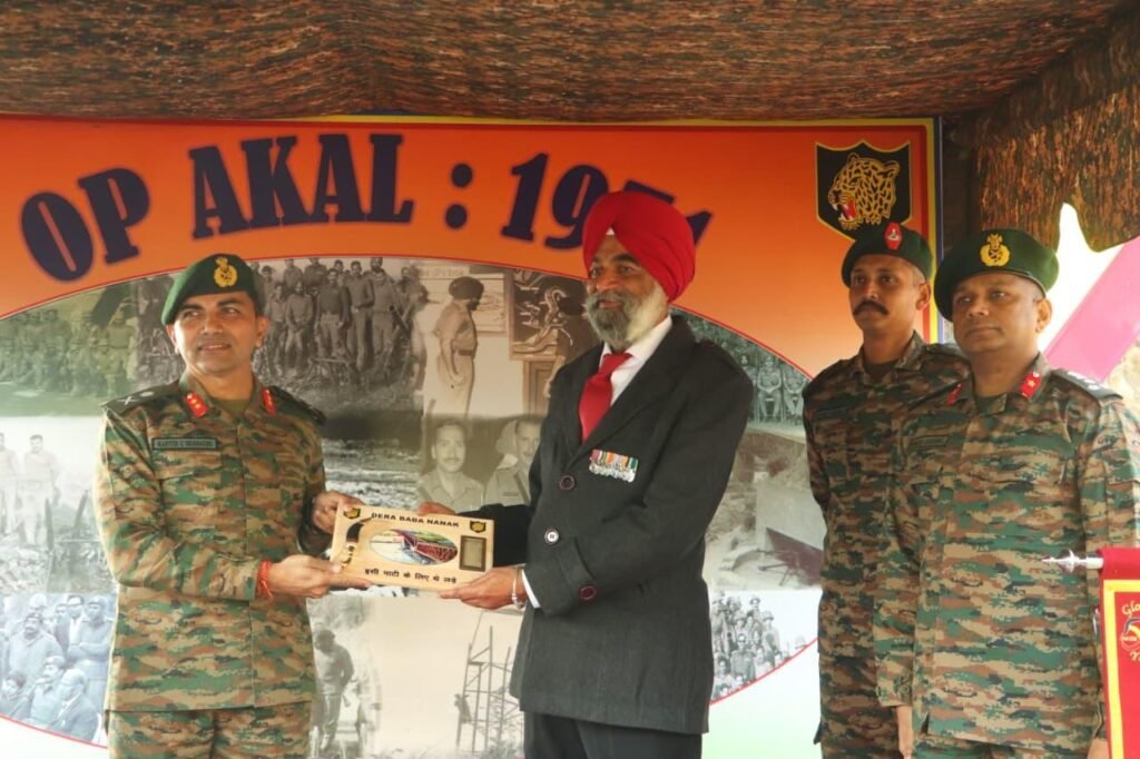 भारतीय सेना ने पंजाब के डेरा बाबा नानक में 54वें डीबीएन दिवस के अवसर पर वर्ष 1971 के ‘ऑपरेशन अकाल’ में भाग लेने वाले डोगराई ब्रिगेड के वीर योद्धाओं के शौर्य को नमन करते हुए श्रद्धापूर्वक स्मरण किया। ऑपरेशन अकाल पश्चिमी मोर्चे पर वज्र कोर (Vajra Corps) द्वारा संचालित एक महत्वपूर्ण आक्रामक कार्रवाई थी, जिसका उद्देश्य शकरगढ़ सेक्टर में पाकिस्तान की 1 कोर को बांधे रखना था, जिससे शत्रु बलों की पुनः तैनाती को रोका जा सका।